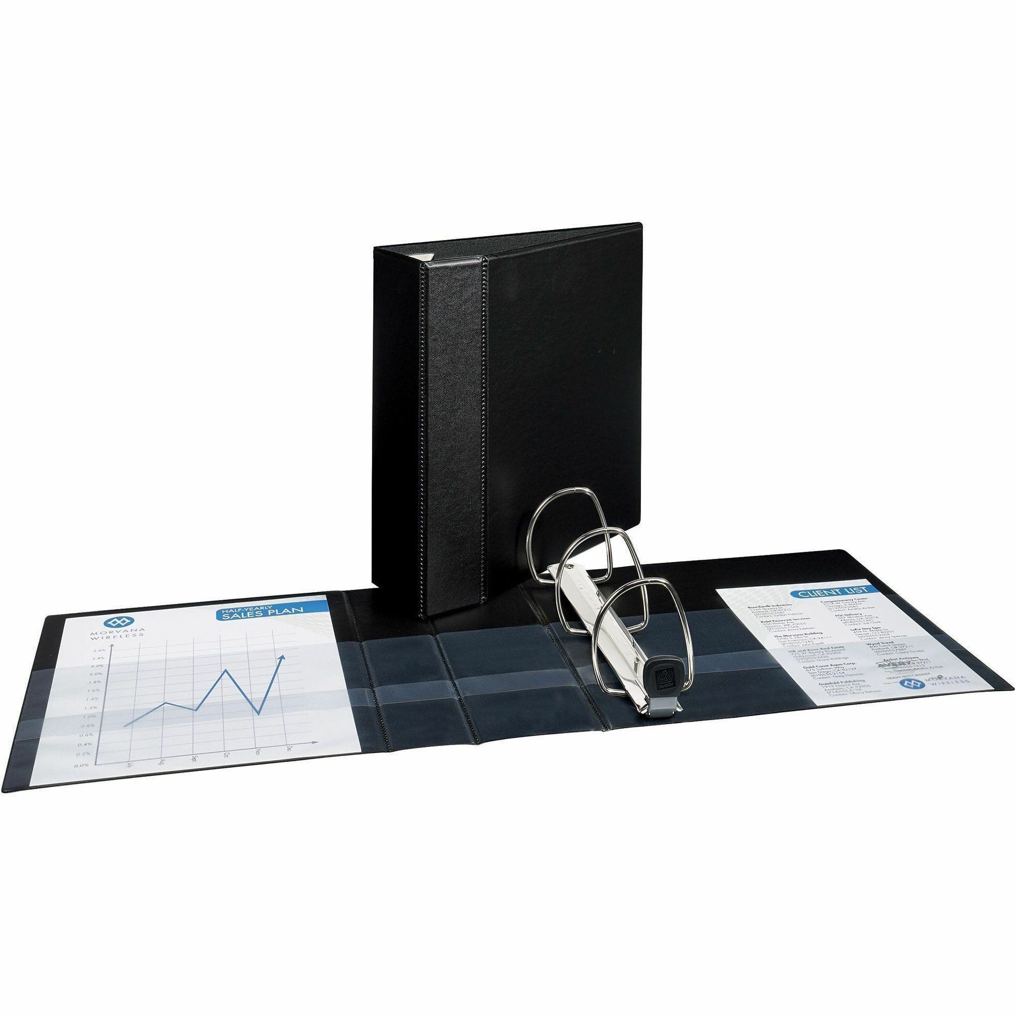 - Wide binder panels fully cover standard dividers and sheet protectors