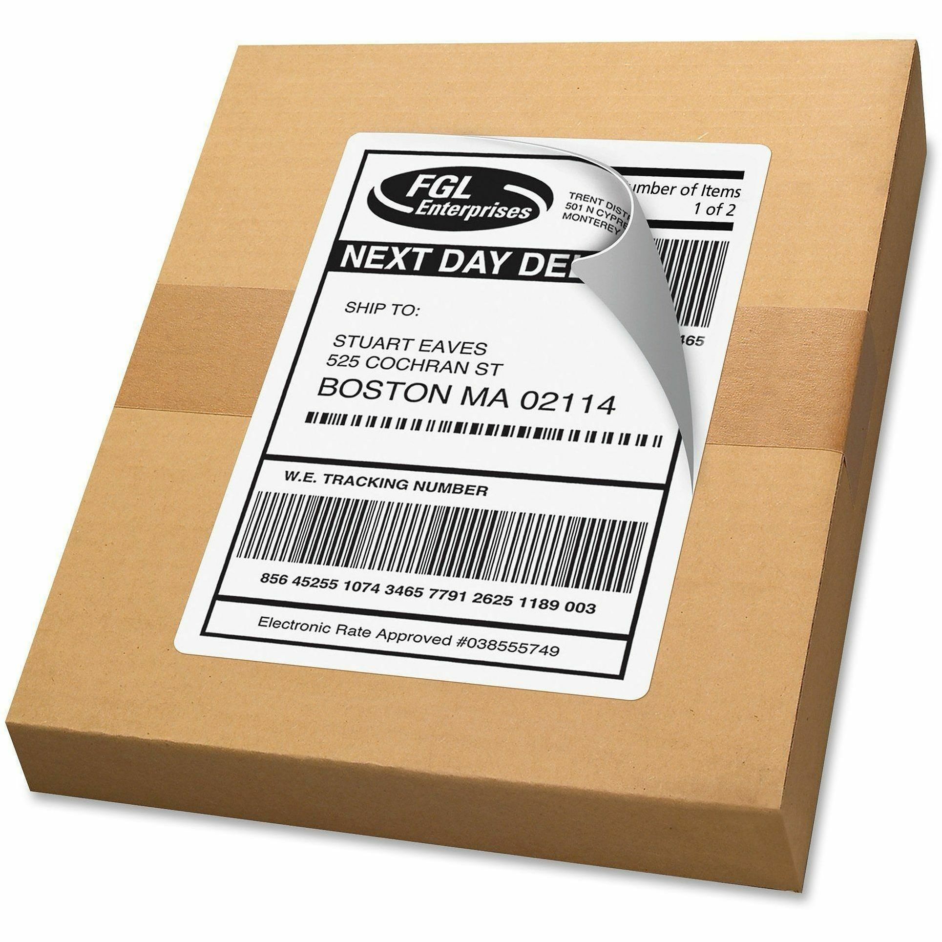 | Marketing Information | Get large shipping and mailing projects out the door quickly and easily with these White Shipping Labels featuring TrueBlock Technology. These bright-white labels with permanent adhesive completely block out any writing underneath so your boxes and envelopes have a neat, professional appearance every time. The number of jam-free, smudge-free labels is perfect for all your high-volume projects. Easily customize with your logo or graphics using free online designs and templates. Then just print using your laser printer and ship. |