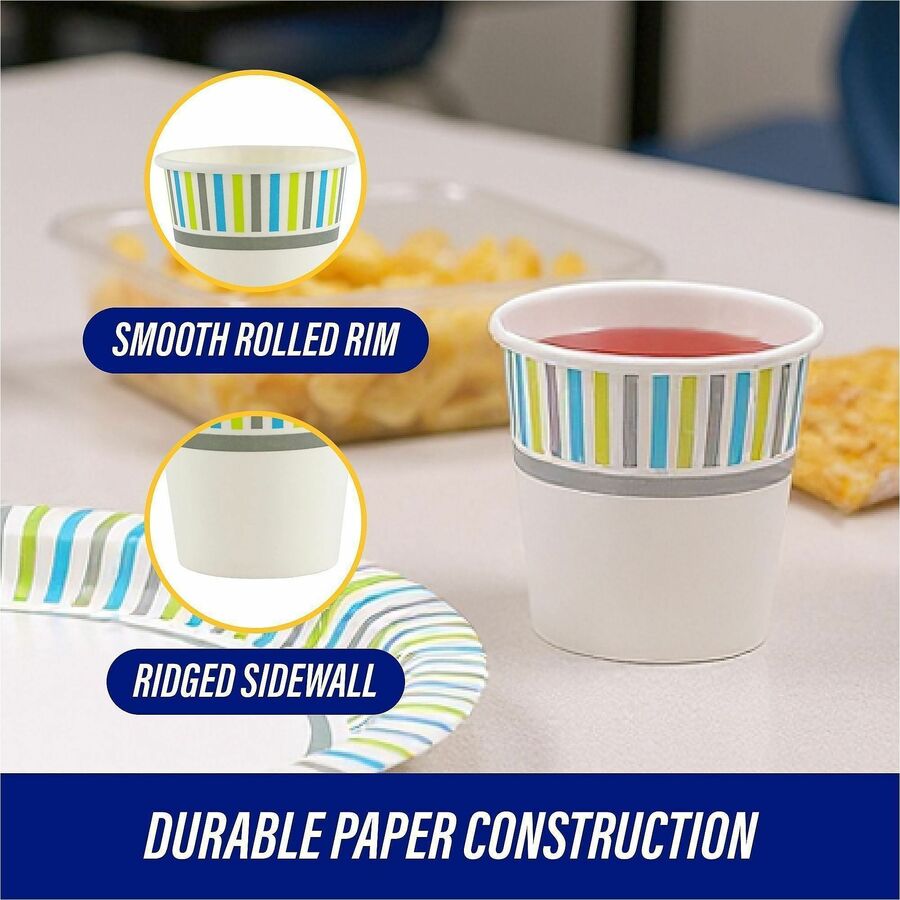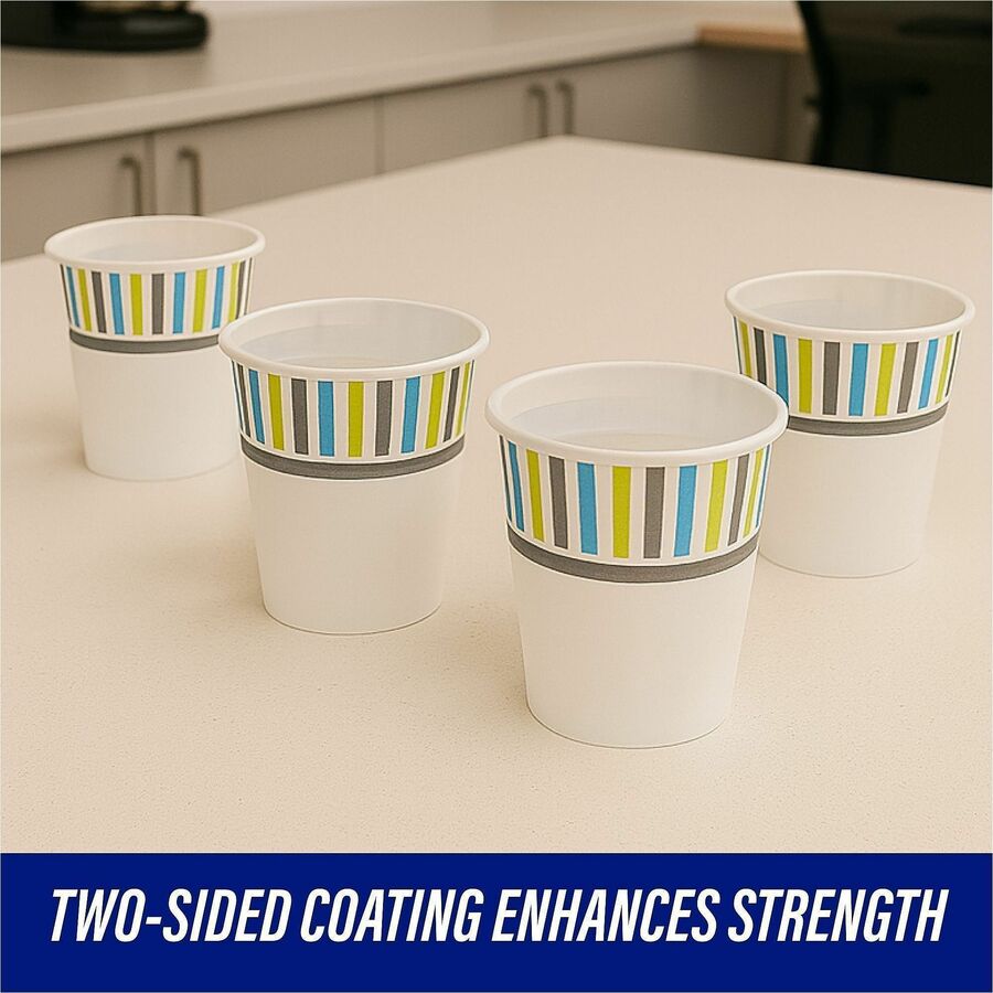 | Marketing Information | Cold paper cups feature a two-sided coating that improves rigidity to prevent messy spills. Durable design also protects against soak-through to hold liquids for longer. Disposable material allows quick cleanup after each use. Cold cups are perfect for serving everyday cold beverages. |