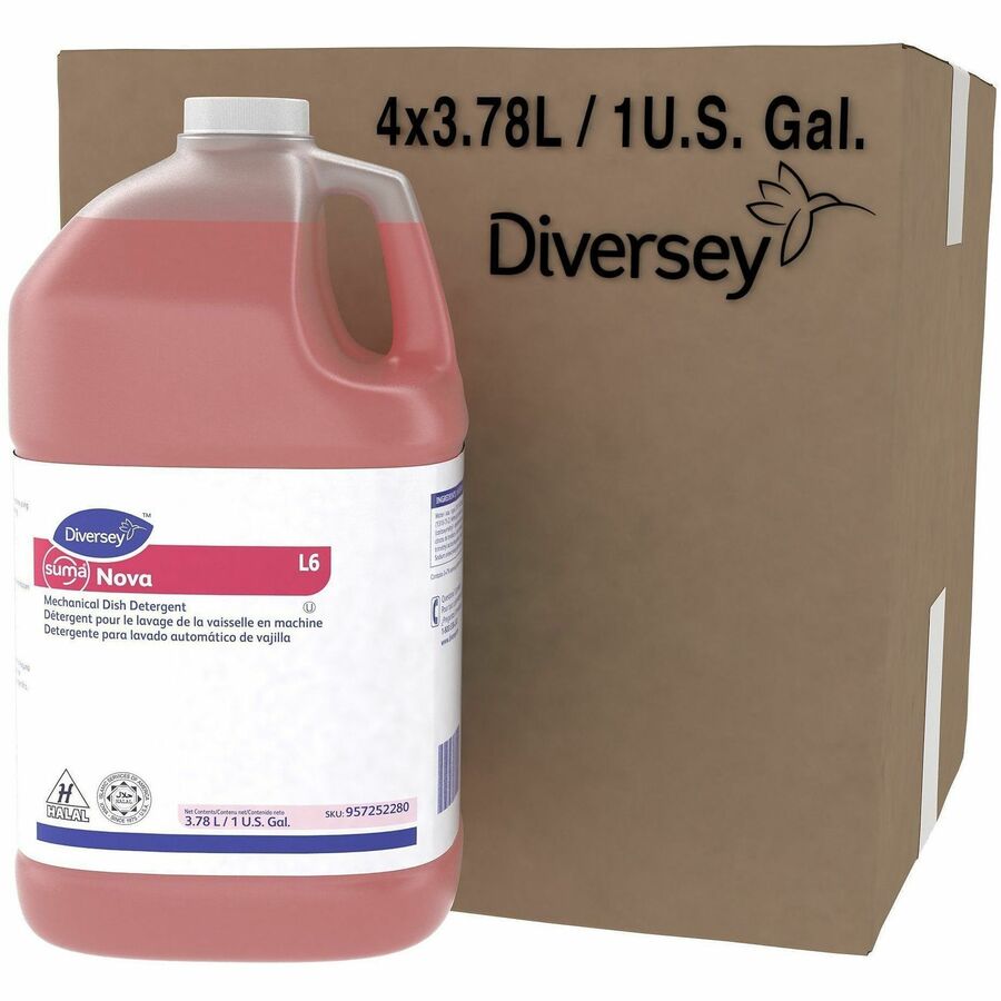 For Dish, Dishwasher - 128 fl oz (4 quart) - 11.5 to 13.9 pH - Characteristic, Ammonia Scent - Recommended For: Food Remover, Grease Remover, Scale Remover, Stain Remover, Hard Water Remover, Soil Remover - Kosher - Red Jug - 4 Pack